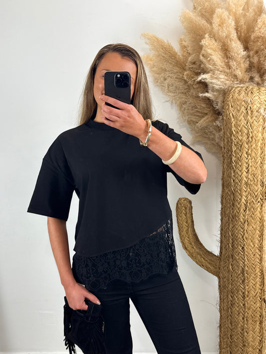 T-shirt dentelle noir